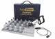 Economical, lightweight, break-resistant plastic, hand suction set. Each cup uses easy-release air-locking valves. Set of 17 includes 13 of the 2" dia cups and 1 each of the 1.8", 1.6", 1.3", and 1.1" dia cups. Also includes pistol grip hand pump, carrying case, and 26" extension tube.