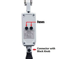 To replace the fuses: Open the two fuse cases on the back of the control panel using a Phillips-head screwdriver and replace the fuses in the fuse cases.