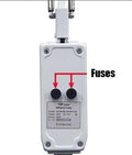 To replace the fuses: Open the two fuse cases on the back of the control panel using a screwdriver and replace the fuses in the fuse cases.